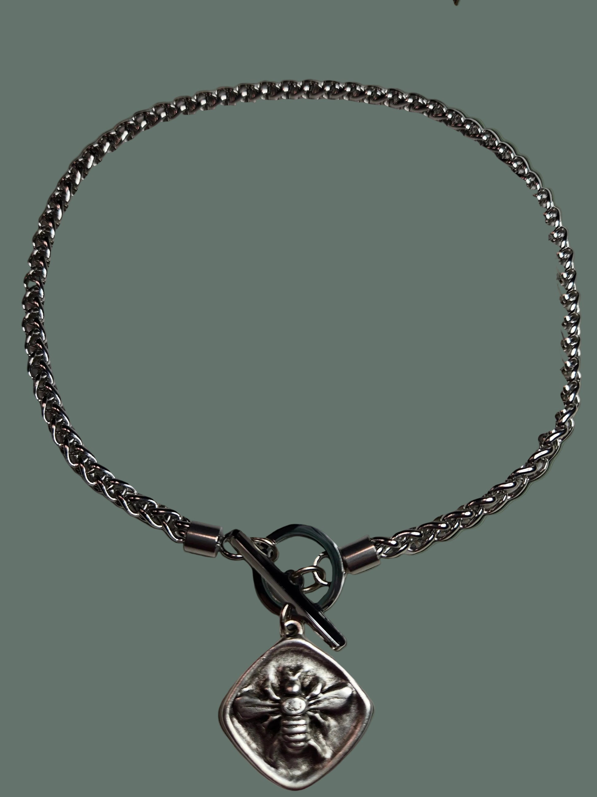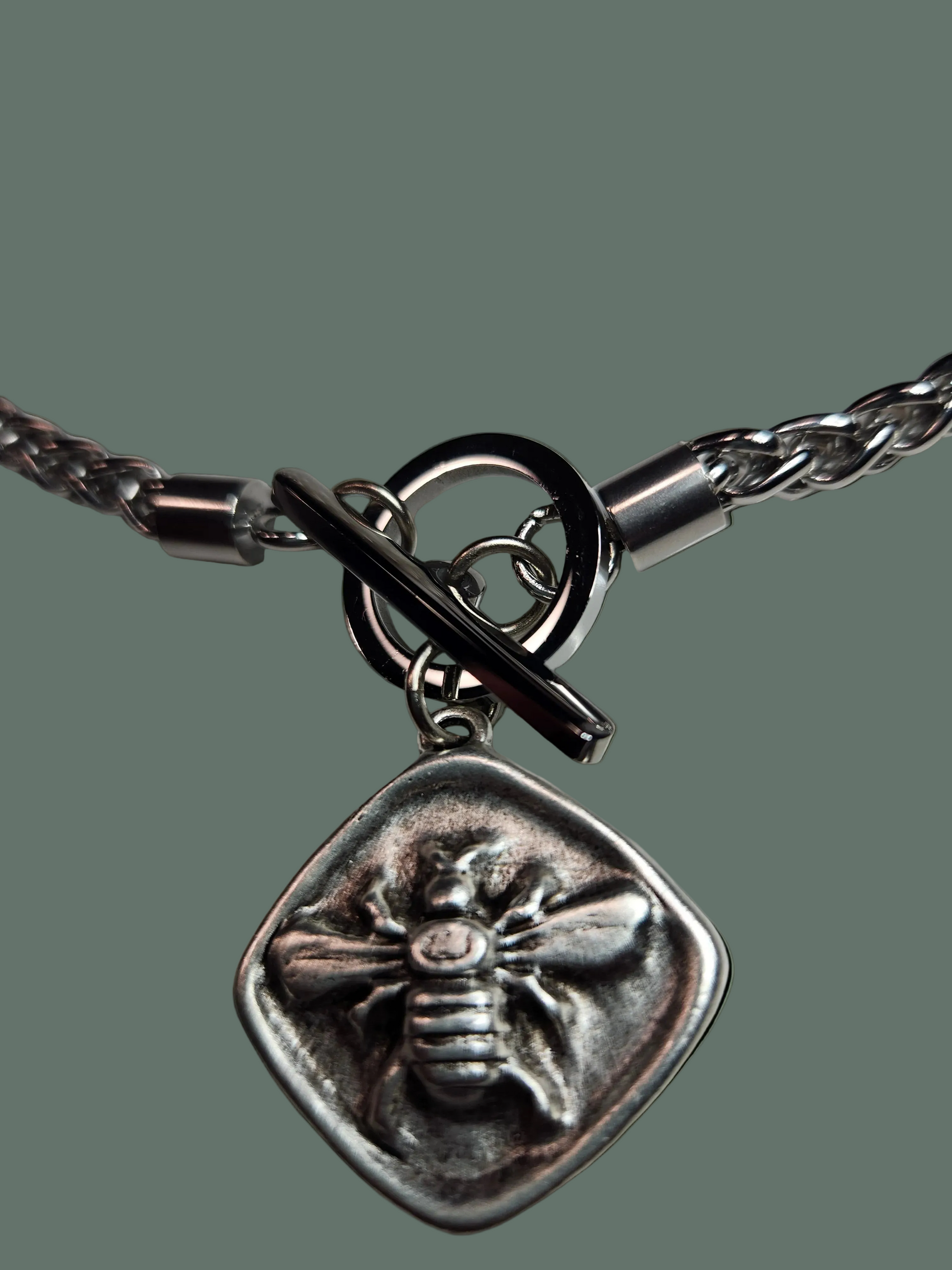 This 19" braided stainless steel toggle necklace with high quality diamond shaped pewter pendant is an eye catcher!