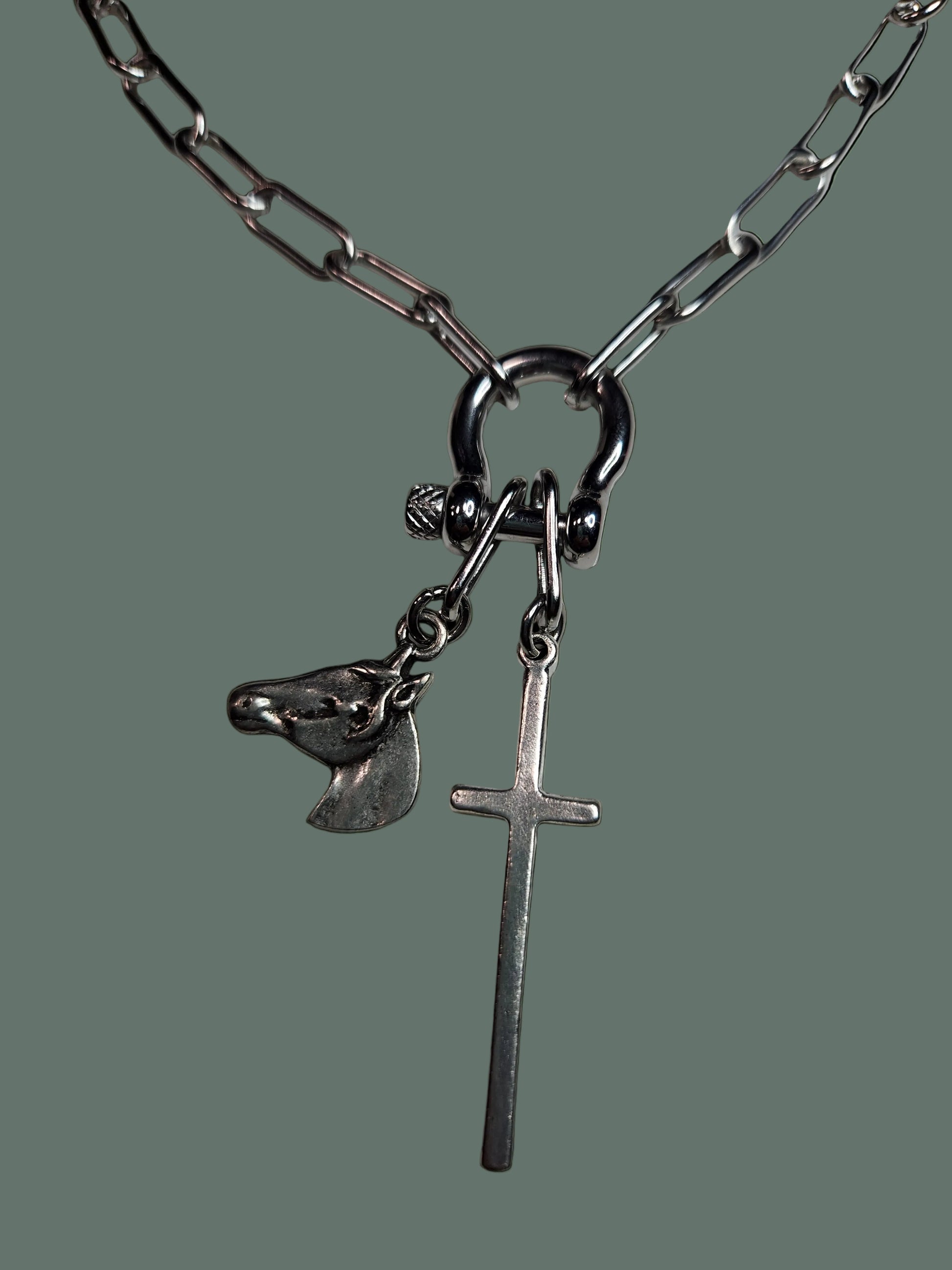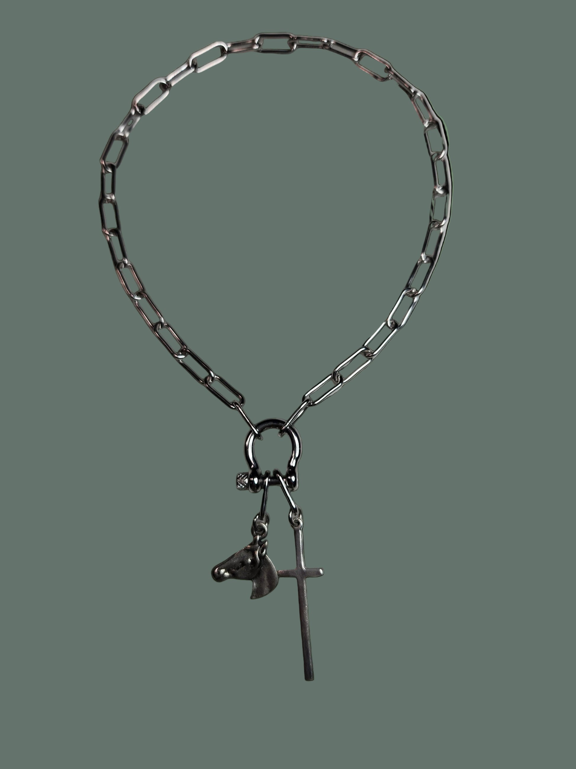 This 5mm paperclip link necklace is sturdy stainless steel. It has a horsehoe-style carabiner is 316 stainless.