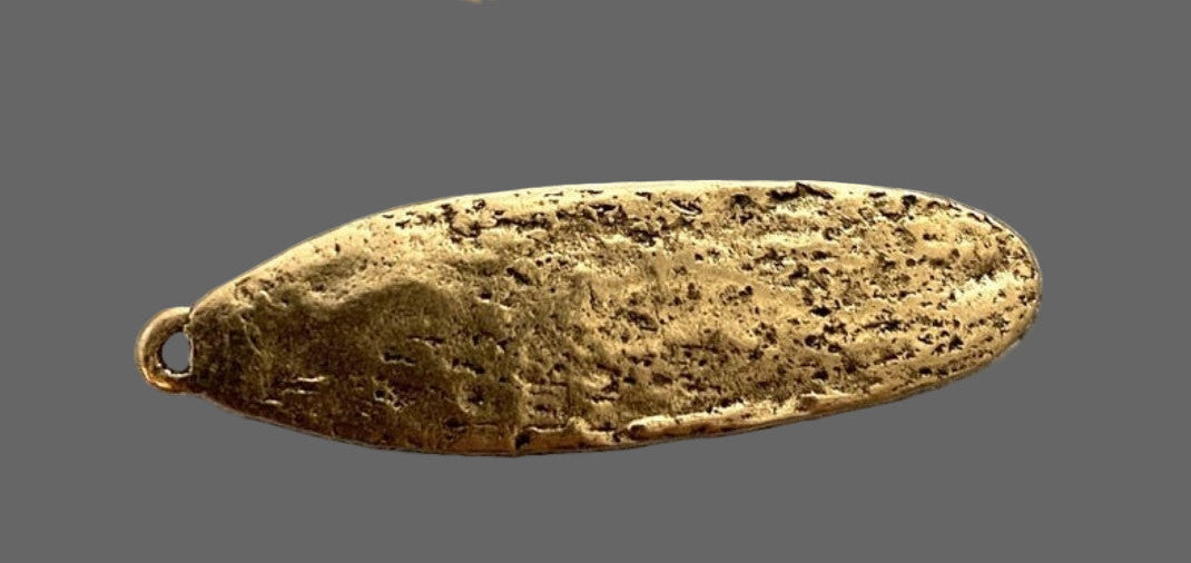 This unique pendant has a rhinestone in the center of the cross. It is made of 12K gold over pewter.