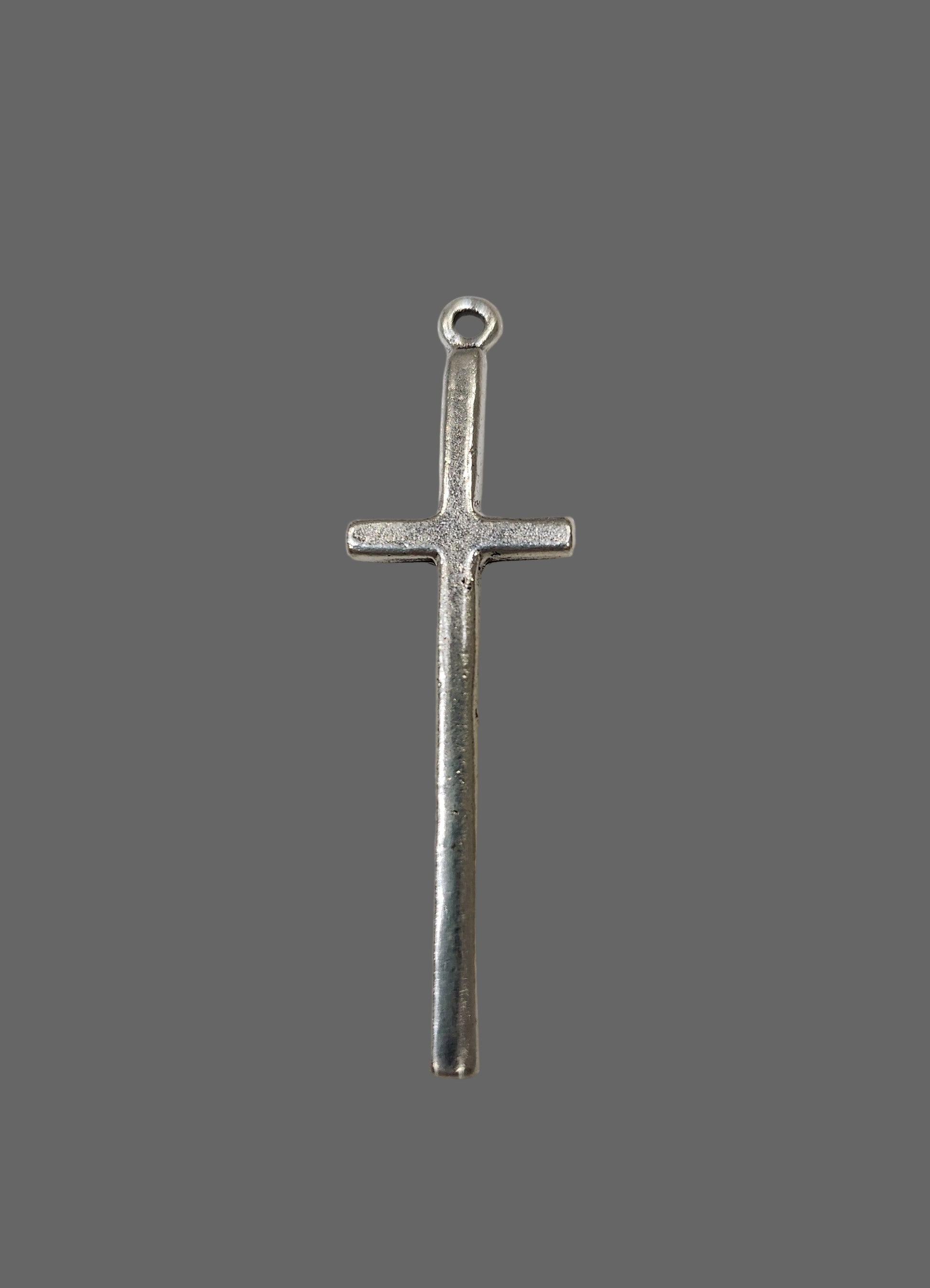 This tall skinny cross would look great by itself or paired with the gold crown charm to represent, Christ the King.