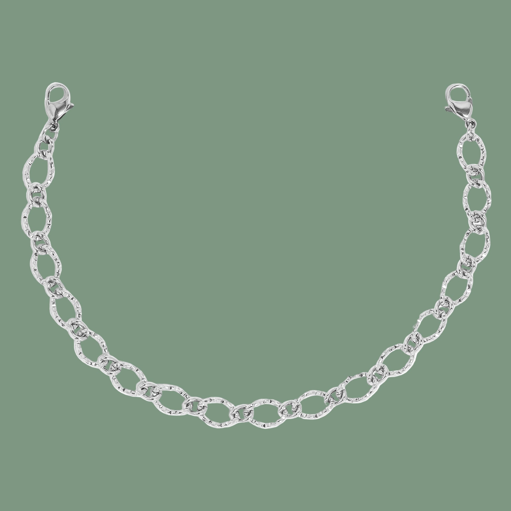 This Hammered Oval Trucker Hat Chain is the talk of the town! This bold design adds an industrial chic touch to any trucker hat, making it a versatile accessory that complements a wide range of styles. This chain features double-ended lobster clasps for easy attachment to the hat's mesh backing. Combining timeless elegance with rugged durability, this hat chain is designed to attract attention! * 9" chain fits standard trucker hats * 100% Waterproof, 316L stainless steel for a non-tarnish.