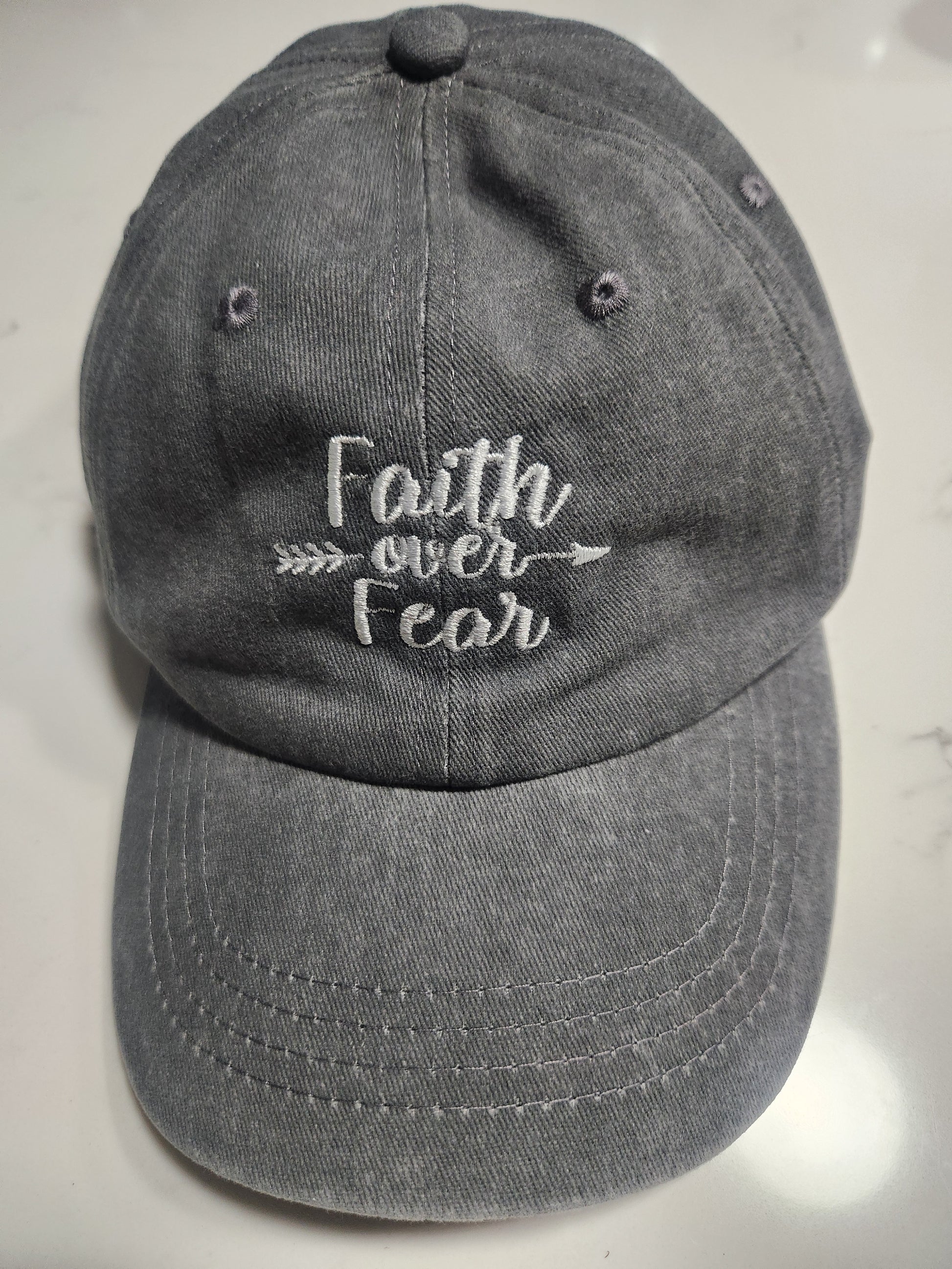 H-Hat- Faith over Fear Grey Sand Washed Ball Cap