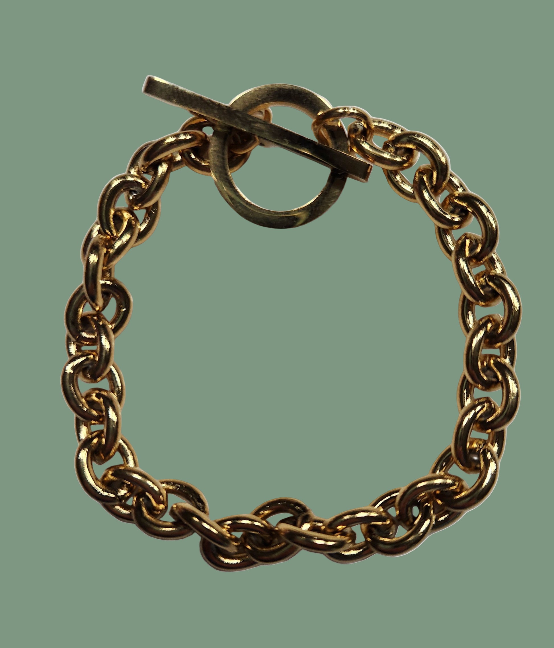 This Large Link Toggle Bracelet is 18K Gold over Stainless Steel.