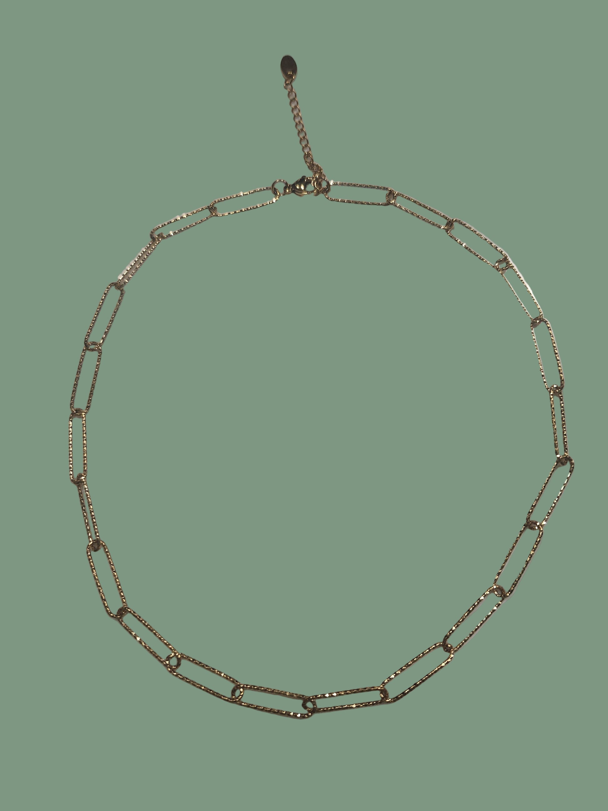 18 K Gold over 304 Stainless Steel. Large linked textured paperclip chain. Design your charm necklace or wear it alone.