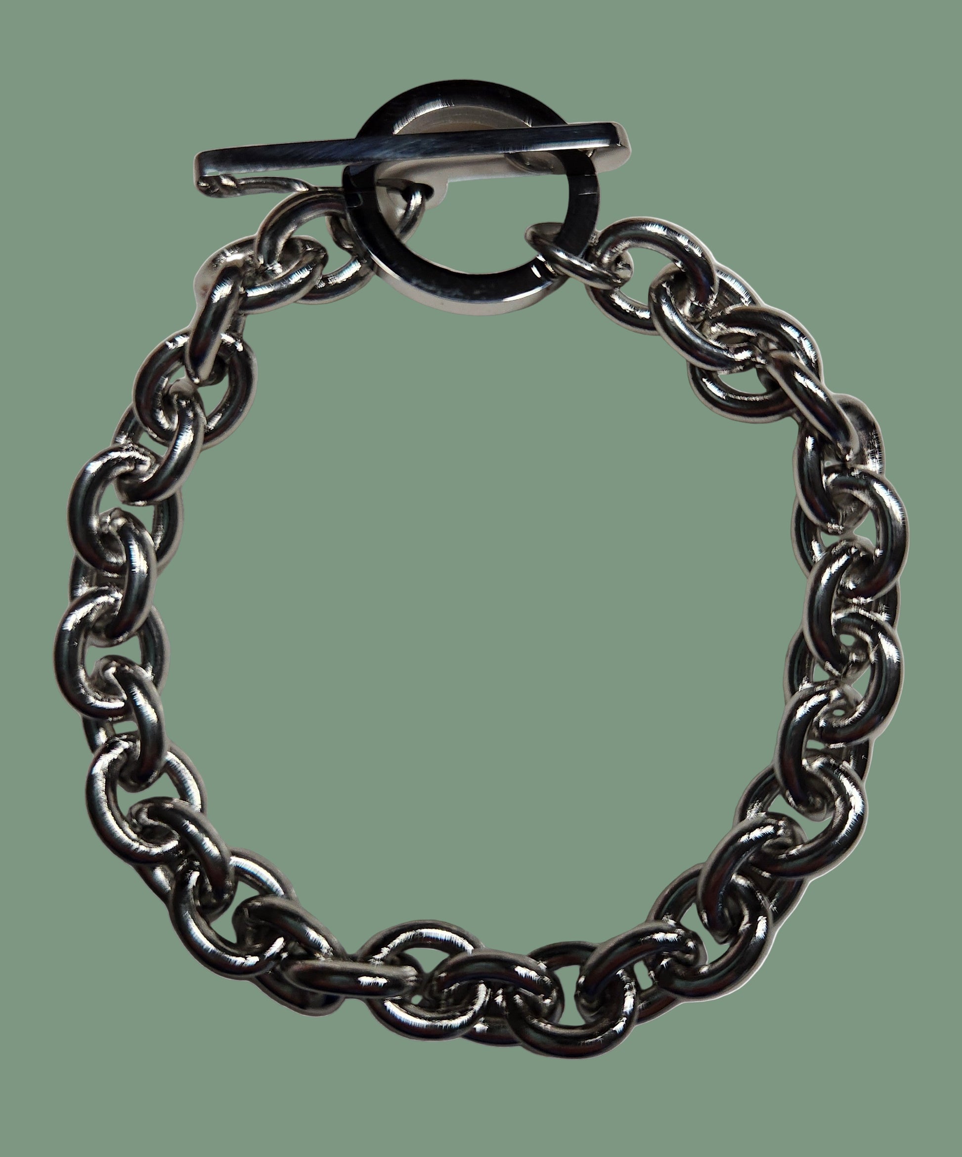 This Large Link Toggle Bracelet is Stainless Steel can be a statement on its own or adorned with charms.