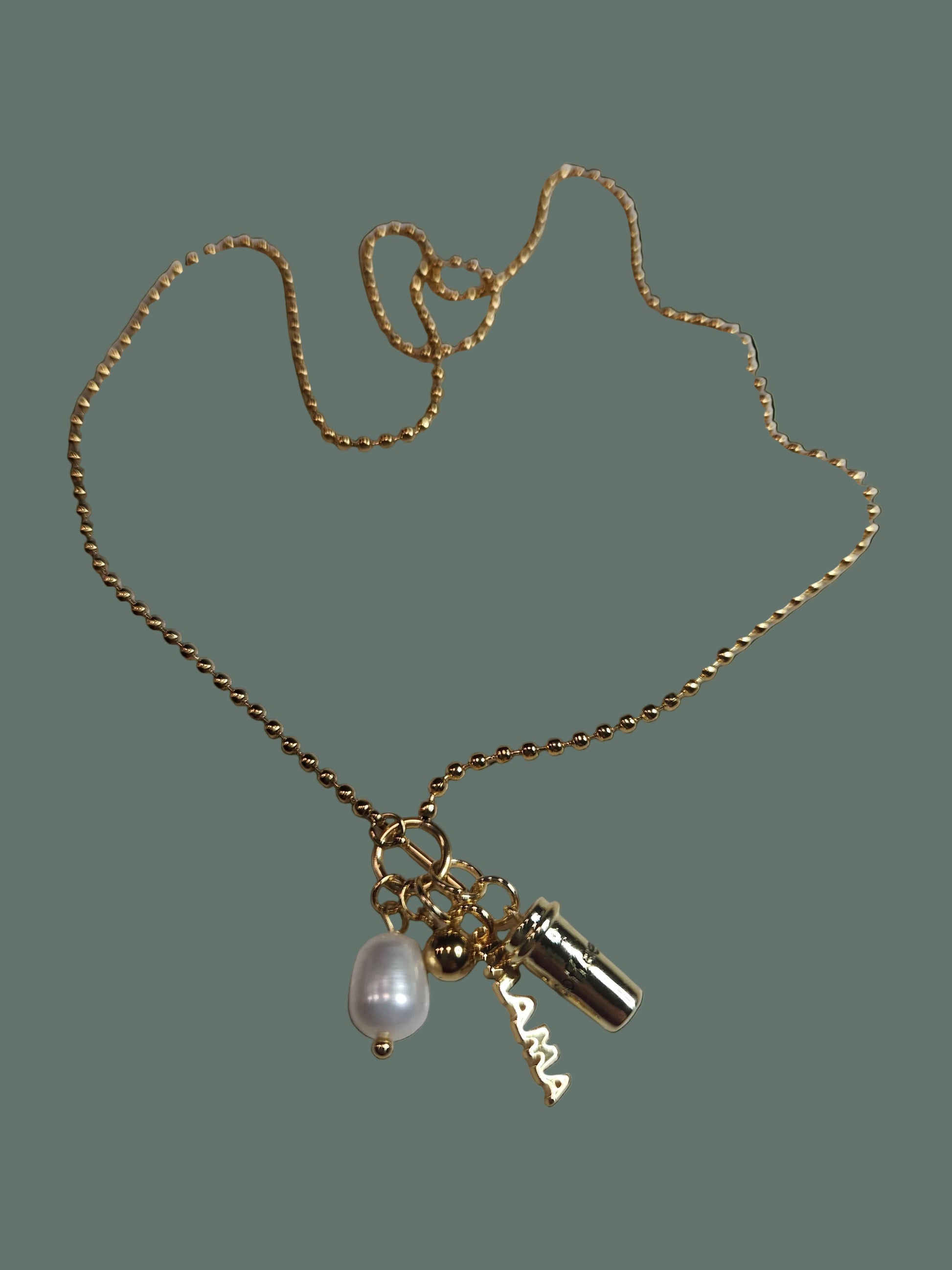 This Pearl Bead Mama Coffee Necklace is a beautiful and delicate addition to any outfit. The 18k gold plate over stainless steel beaded chain showcases a classic pearl along with a charming coffee and tiny mama pendant. At 18", it is the perfect length for any neckline. Elevate your style with this elegant necklace.