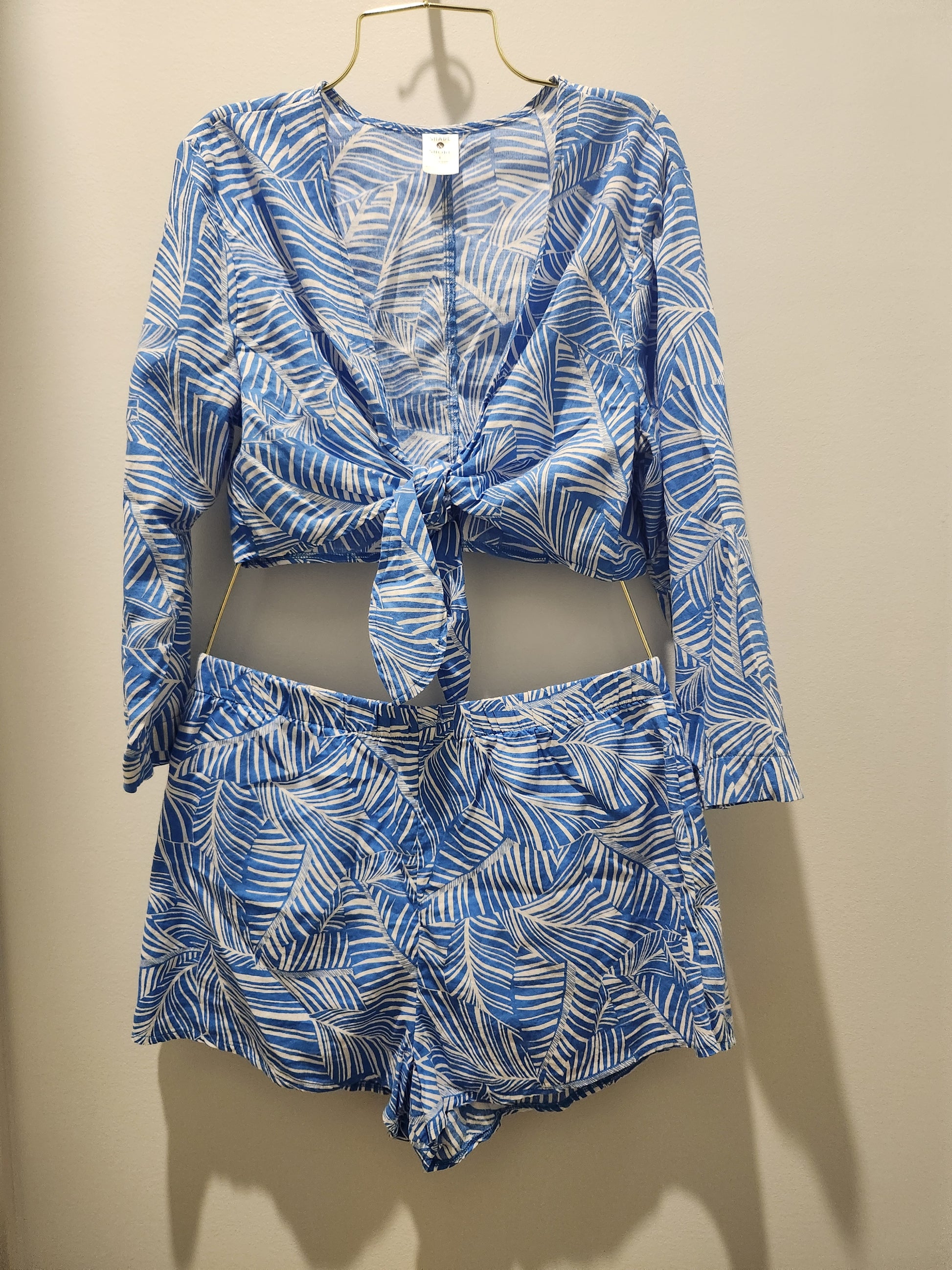 Get ready for sunny days with the Shade and Shore Short Set from Holly's Collection! This playful blue and white summer pattern features a breezy tie-front top and comfy shorts, perfect for beach strolls or backyard fun. Lightweight and stylish, it’s your go-to outfit for warm weather adventures.