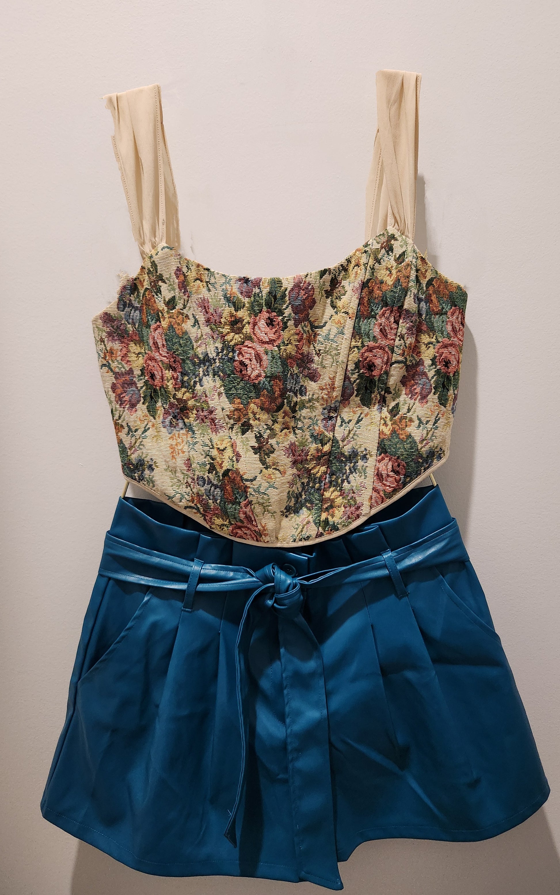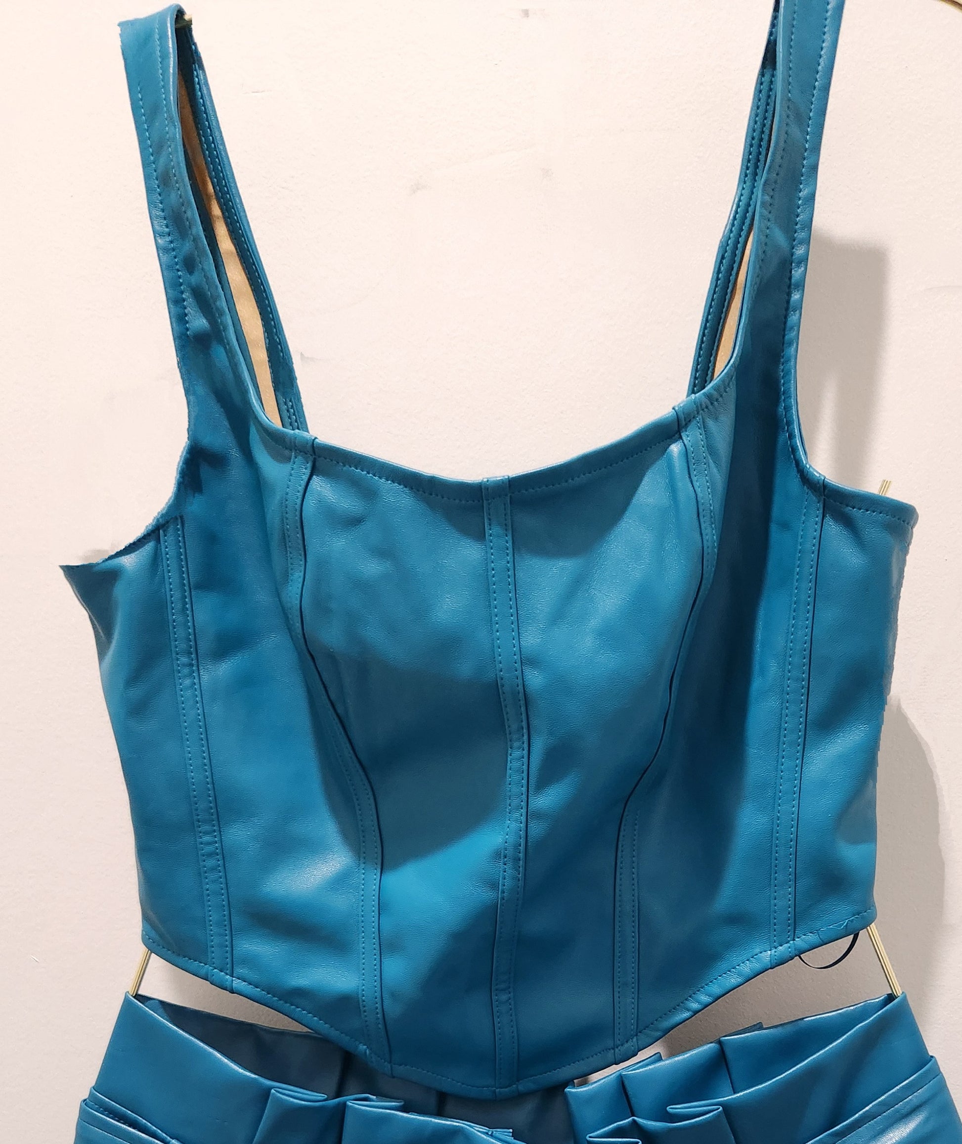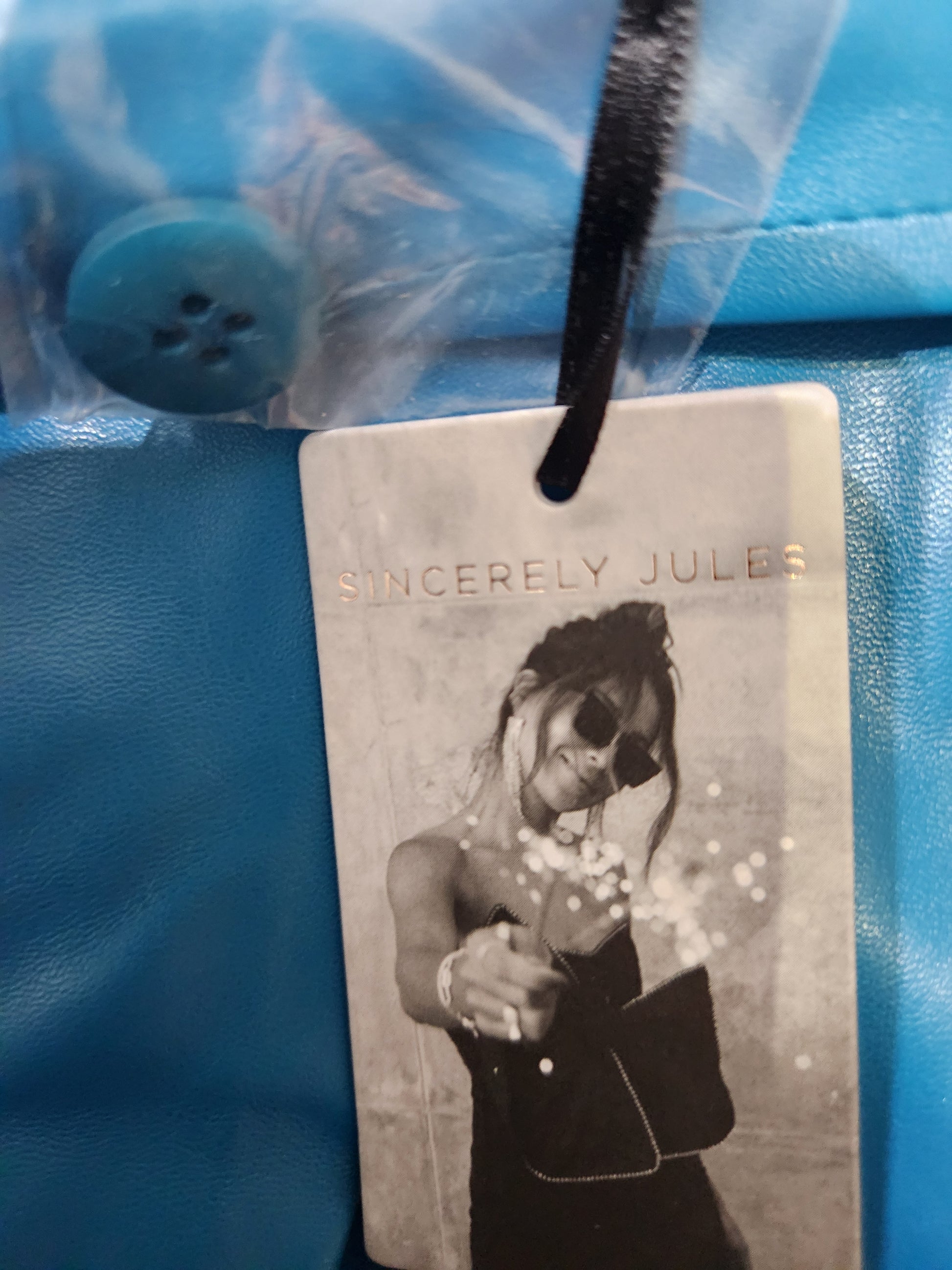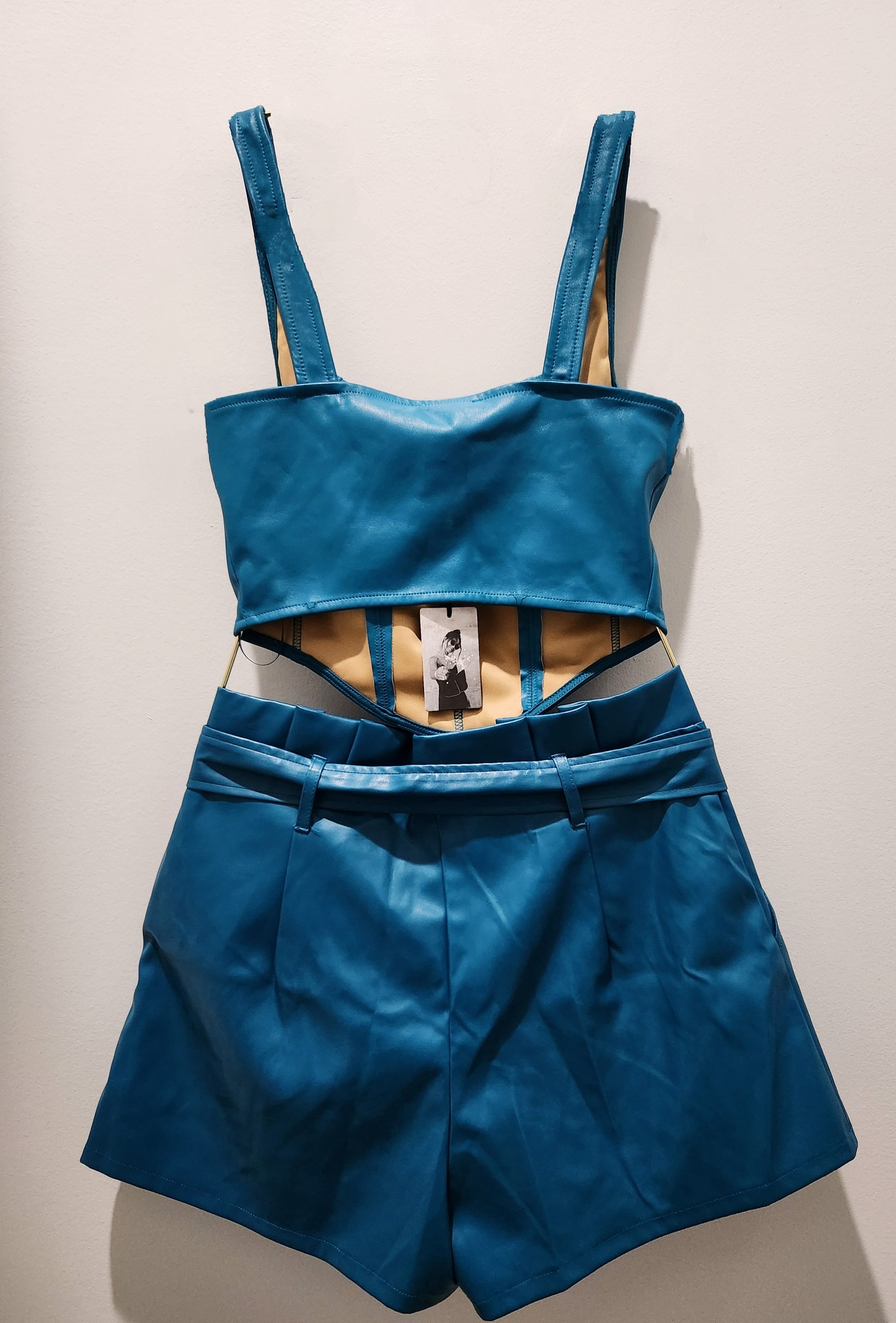 Step out in style with the Sincerely Jules Vegan Leather Teal Short Set! This playful set features a top slightly lighter than the shorts, adding a fun twist to your look. Perfect for mixing and matching, it pairs beautifully with floral corsets for a flirty, fresh vibe. Brand new with tags, this size L set is ready to elevate your wardrobe with a splash of teal charm.