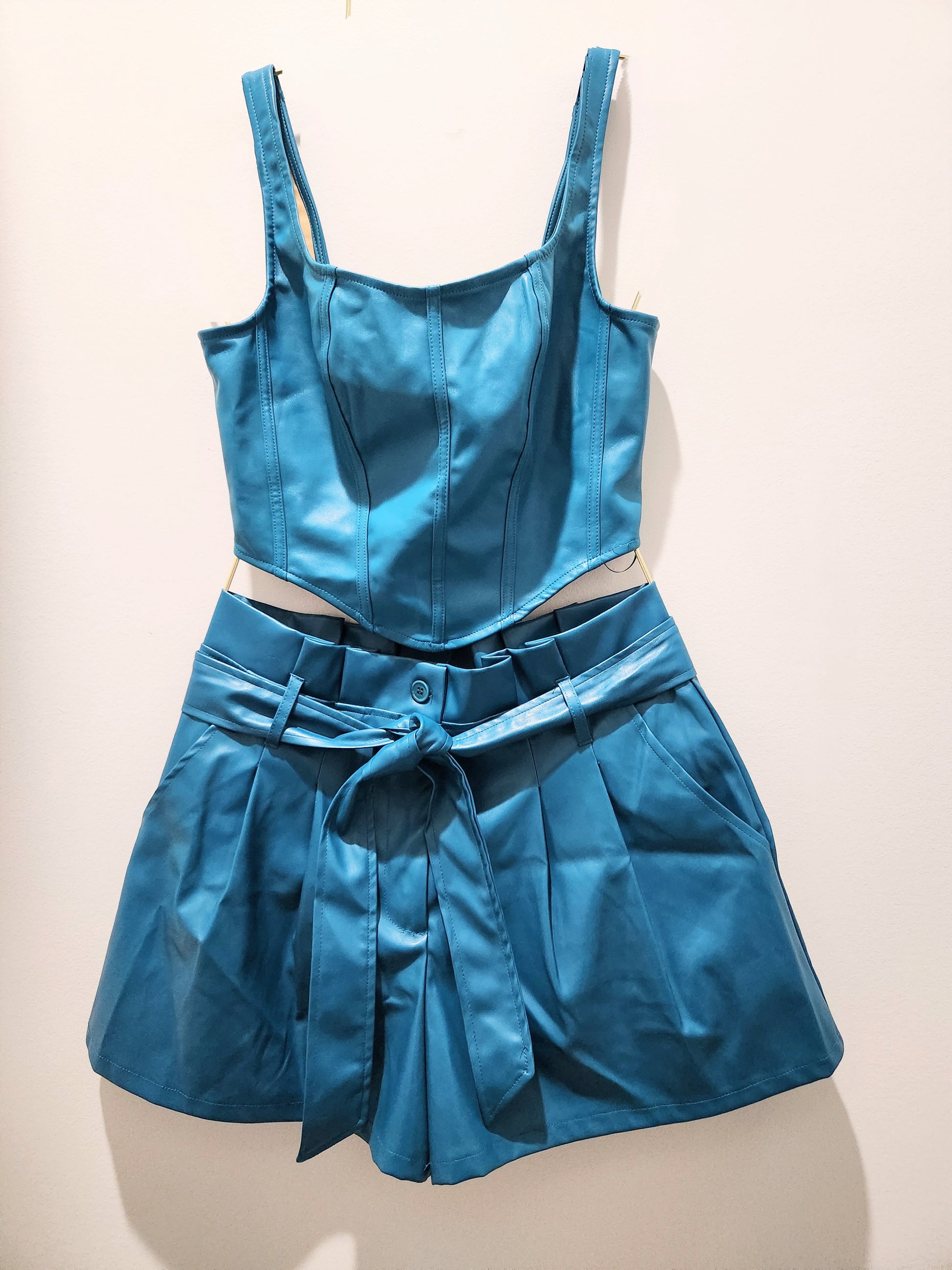 RSS- Holly's Resale Collection Sincerely Jules Vegan Leather Teal Short Set Sz L