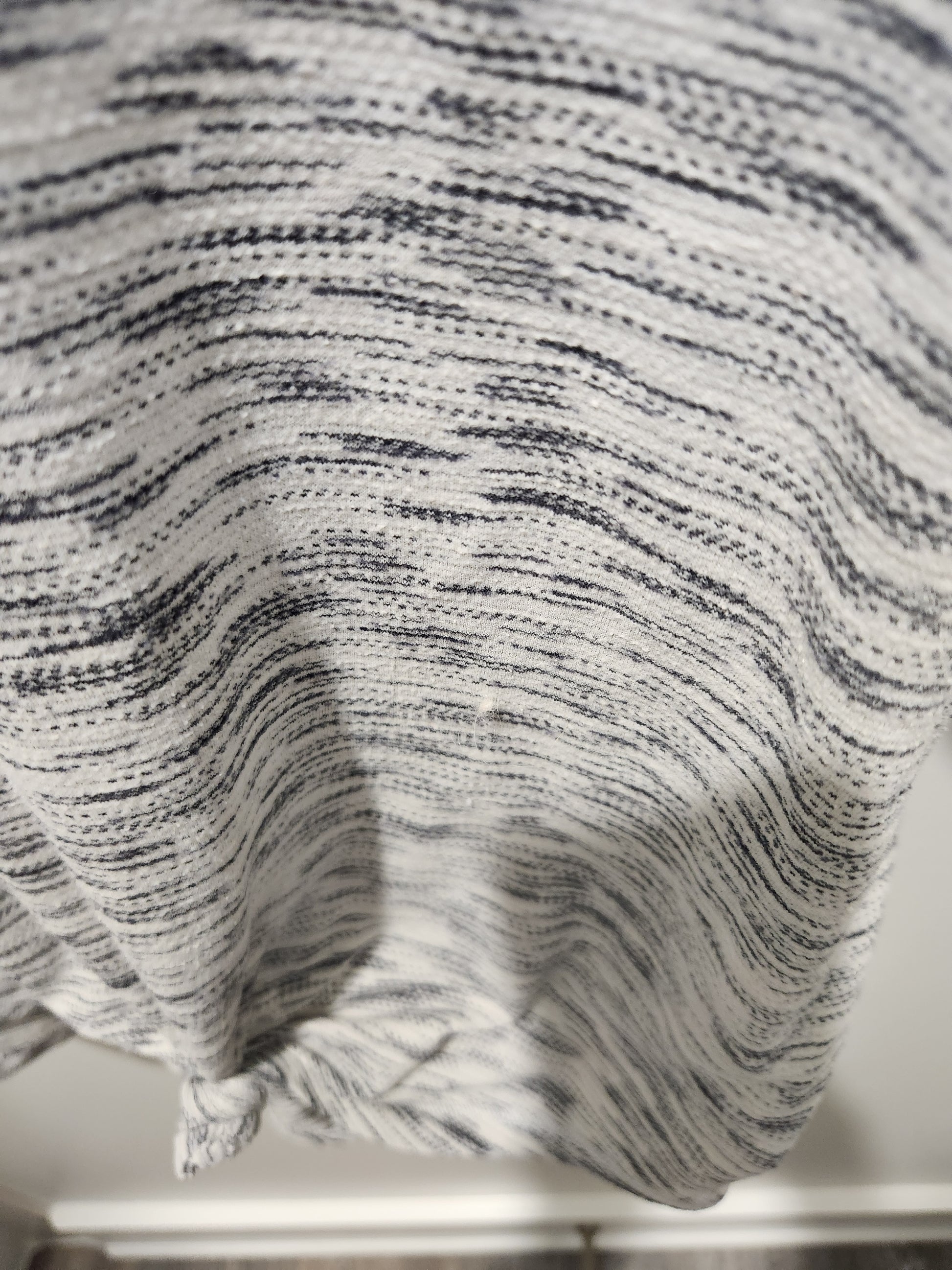 Style this as an over shirt for layering for a workout with a sports bra or top. There is a small pull in fabric as shown in photos 22" pit to pit and 28" long. Lightweight!