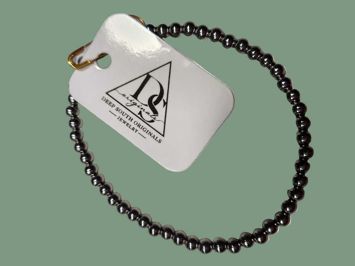 This Stainless-Steel Beaded Bracelet with 5mm beads, by DSO, could be stacked with gold or silver or personalized with charms.